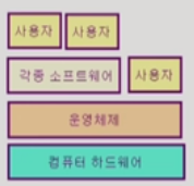 운영 체제는 컴퓨터 하드웨어 위에 설치되어 사용자 및 다른 모든 소프트웨어와 하드웨어를 연결하는 소프트웨어 계층